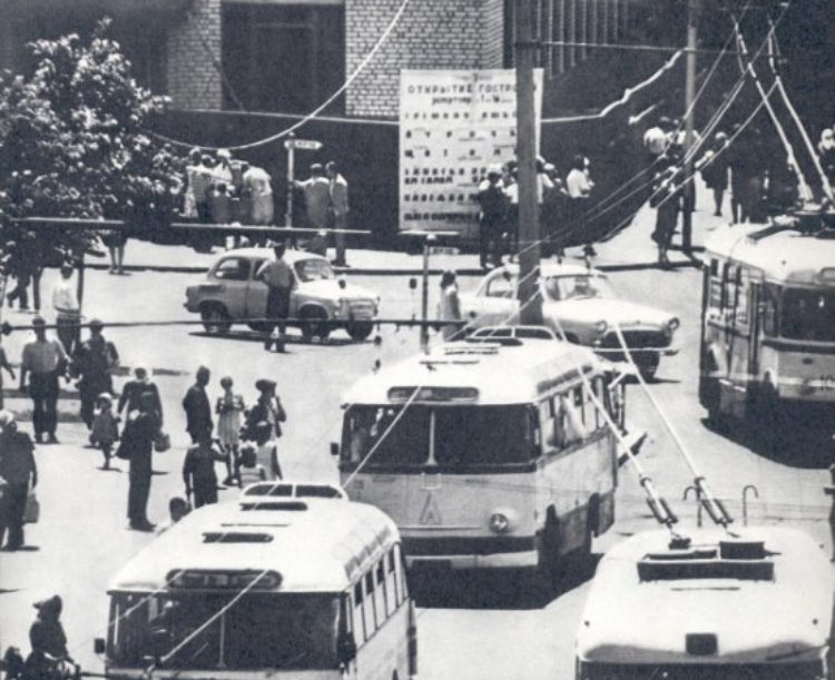 Возвращаясь на площадь Мира, от которой по улице Лермонтова идет главная транспортная артерия города, путешественник видит современные в то время многоэтажные дома, окруженные скверами, цветниками и газонами. После остановки «Центральный рынок» транспортный поток раздваивается. Автобус №4 возвращает на улицу Кобылянского и мимо трампарка через поселок южного комбината идет в Ингулецкий микрорайон. Троллейбус №5 по улицам Кобылянского, Песочной и Вокзальной доставляет людей на центральную железнодорожную станцию города. Автобус №21 едет дальше: через район живописных прудов и Соцгорода он выезжает в поселок Долгинцево.