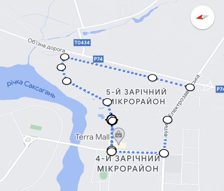 Маршрут №9, також для досвідчених бігунів. Він простягається навколо мікрорайону 5-й Зарічний. 4,5 кілометрів екологічно чистого повітря. Не враховуючи вихлопи автомобілів. Віддаленість мікрорайону від заводів і кар’єрів і наявність річки на відрізку в один кілометр – є перевагою цього маршруту.