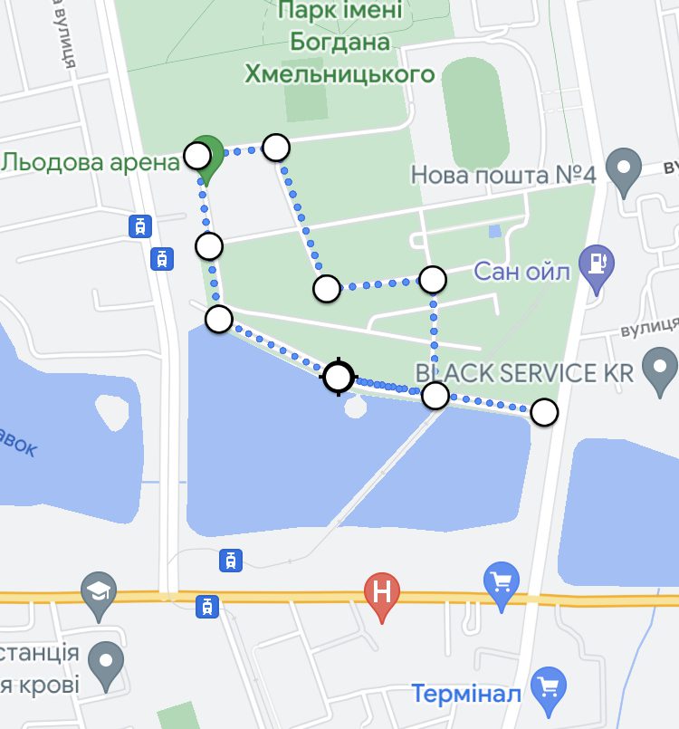 Маршрут №2 – пробіжка Гданцевським парком у Центрально-Міському районі. Майже 2 кілометри природи, зелених насаджень і річкової свіжості. Перевага – немає будинків та автомобільних доріг. Головне, якщо вирішили побігати ввечері будьте уважні, на доріжках парку гасають чимало мешканців на електросамокатах. Хоч у Гданцівському парку і є відокремлена велодоріжка, не всі драйвери дотримуються правил.